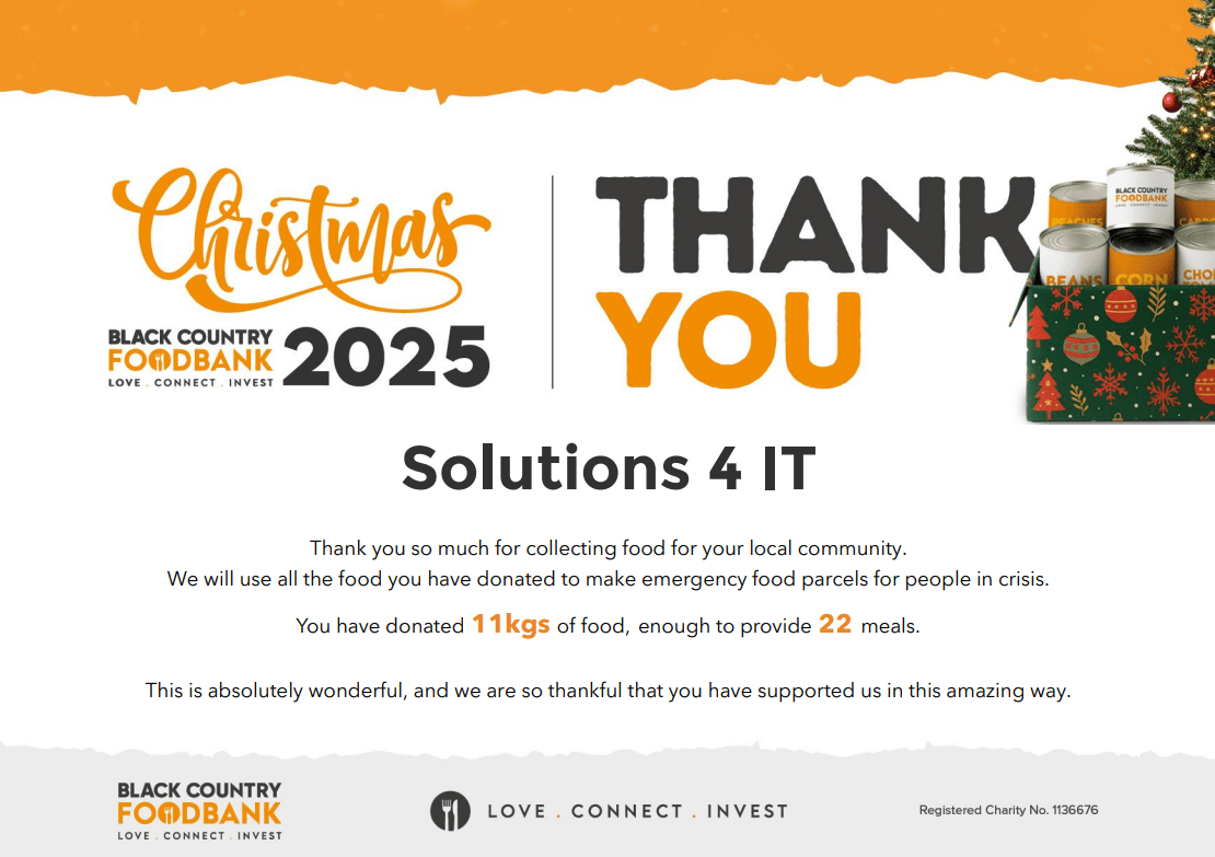 Just before we had our Christmas break of 2025, we are proud to say that we collected and donated 11 kilograms of food for the Black Country Foodbank! This is the equivalent of 22 meals for those in need.